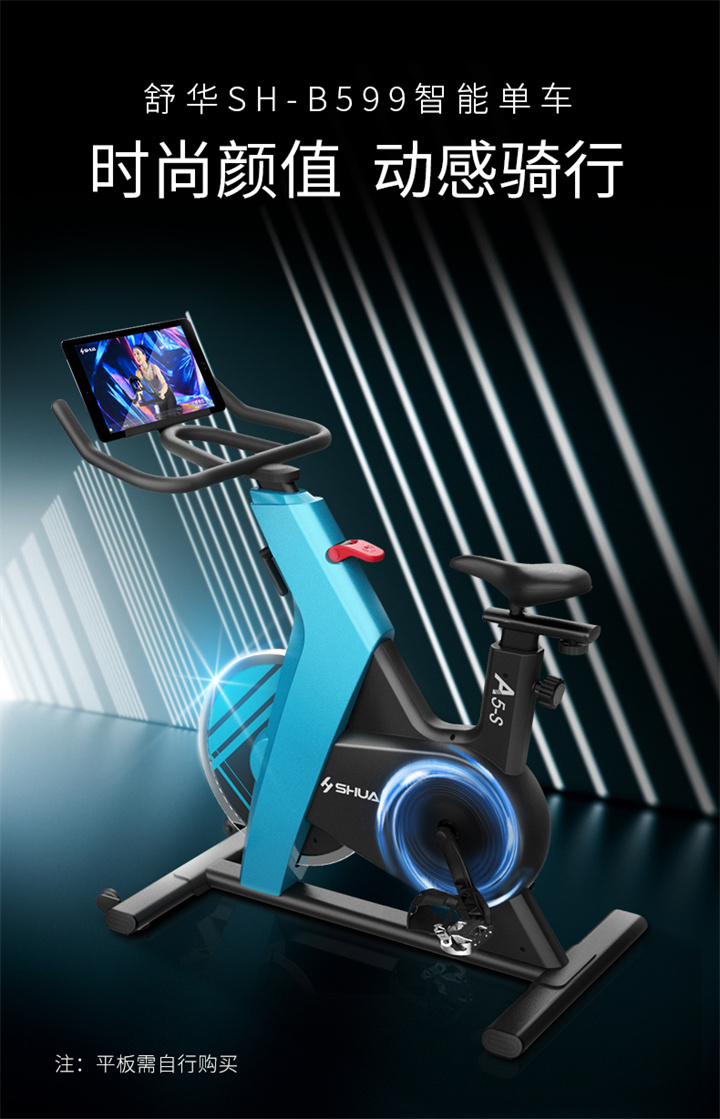 旺财28推荐健身器材-舒华动感单车SH-B599采用三角形车架搭配工字底座的稳定结构设计,骑行更稳定,承重可达125kg,手动磁控阻力设计,骑行时无物理摩擦,更顺畅静音,同时无需插电,使用更便捷。13kg磁控飞轮,足量均质,保障骑行时的惯性力及动平衡,骑行劲爽。